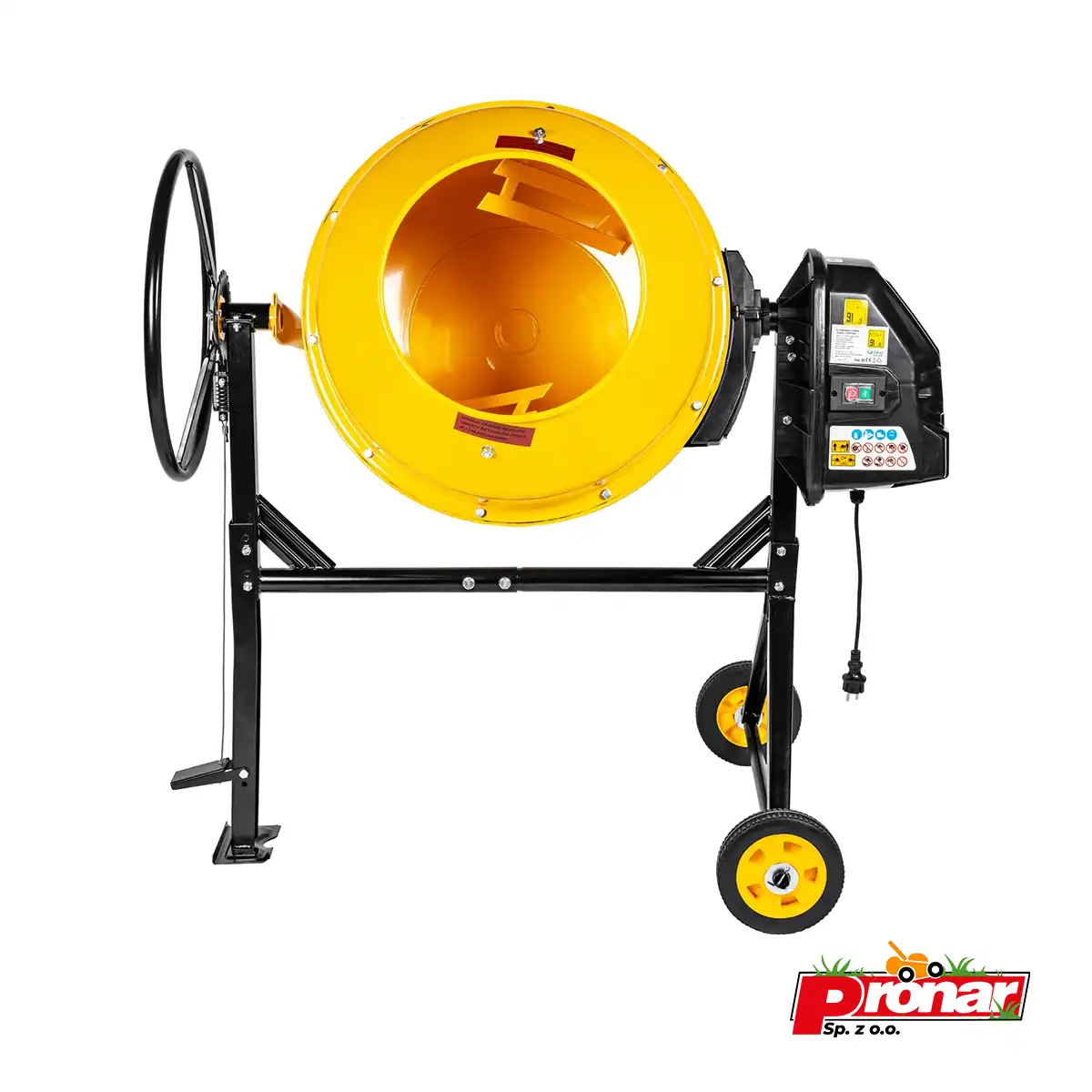 Model BT160 został zaprojektowany z myślą o pracy przy różnego rodzaju zaprawach budowlanych. Napędza ją jednofazowy silnik o mocy 650 W, który zapewnia stabilną pracę i dobre tempo mieszania. Przeniesienie napędu na bęben realizowane jest za pomocą paska klinowego, co ogranicza awaryjność i ułatwia serwis. Całkowita pojemność bębna wynosi 160 l, natomiast robocza około 145 l, co sprawia, że betoniarka nadaje się zarówno do większych, jak i mniejszych realizacji. Przechyl bębna odbywa się wygodnie przy użyciu koła z tarczą regulacyjną, a zestaw transportowy ułatwia przestawianie maszyny w obrębie placu budowy. Stabilna stalowa rama oraz żeliwna zębatka napędowa gwarantują długą żywotność urządzenia, a plastikowa osłona zębatki podnosi bezpieczeństwo użytkowania. Wszystkie maszyny Cedrus spełniają normy CE, co stanowi dodatkowe potwierdzenie jakości.