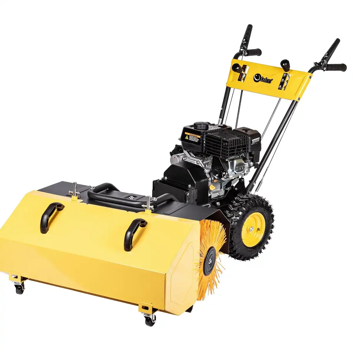 Silnik Loncin G200F o pojemności 196 cm³ zapewnia pewny napęd w każdych warunkach. Maszyna ma aż 5 biegów do przodu i 2 do tyłu, dzięki czemu łatwo dobrać prędkość do rodzaju pracy – od precyzyjnego manewrowania na wąskim chodniku po szybkie przejazdy na dużych placach. W sezonie zimowym szybko zamienisz zamiatarkę w odśnieżarkę wirnikową lub pług, a pojemnik na zanieczyszczenia przyda się przez resztę roku do zbierania piasku, żwiru czy liści.