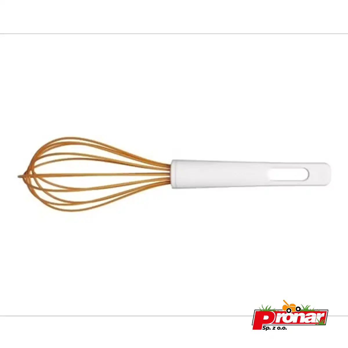 Silikonowe wykończenie sprawia, że trzepaczka może być bezpiecznie używana w naczyniach z powłoką nieprzywierającą, bez ryzyka ich uszkodzenia. Produkt jest prosty w utrzymaniu czystości – można go myć pod bieżącą wodą lub w zmywarce, co znacząco ułatwia codzienne użytkowanie.